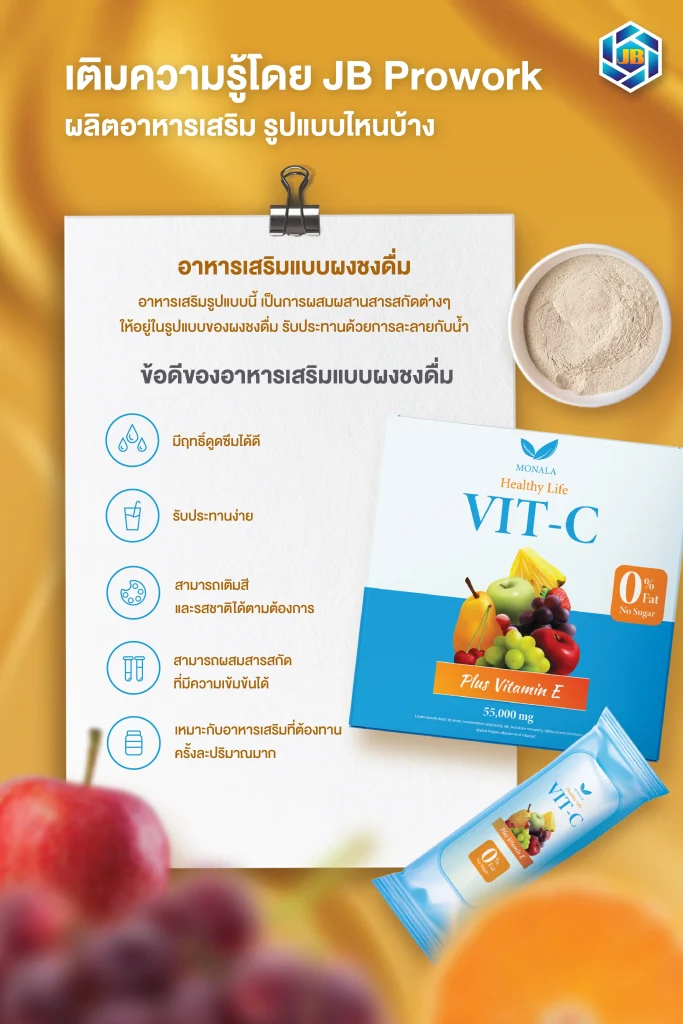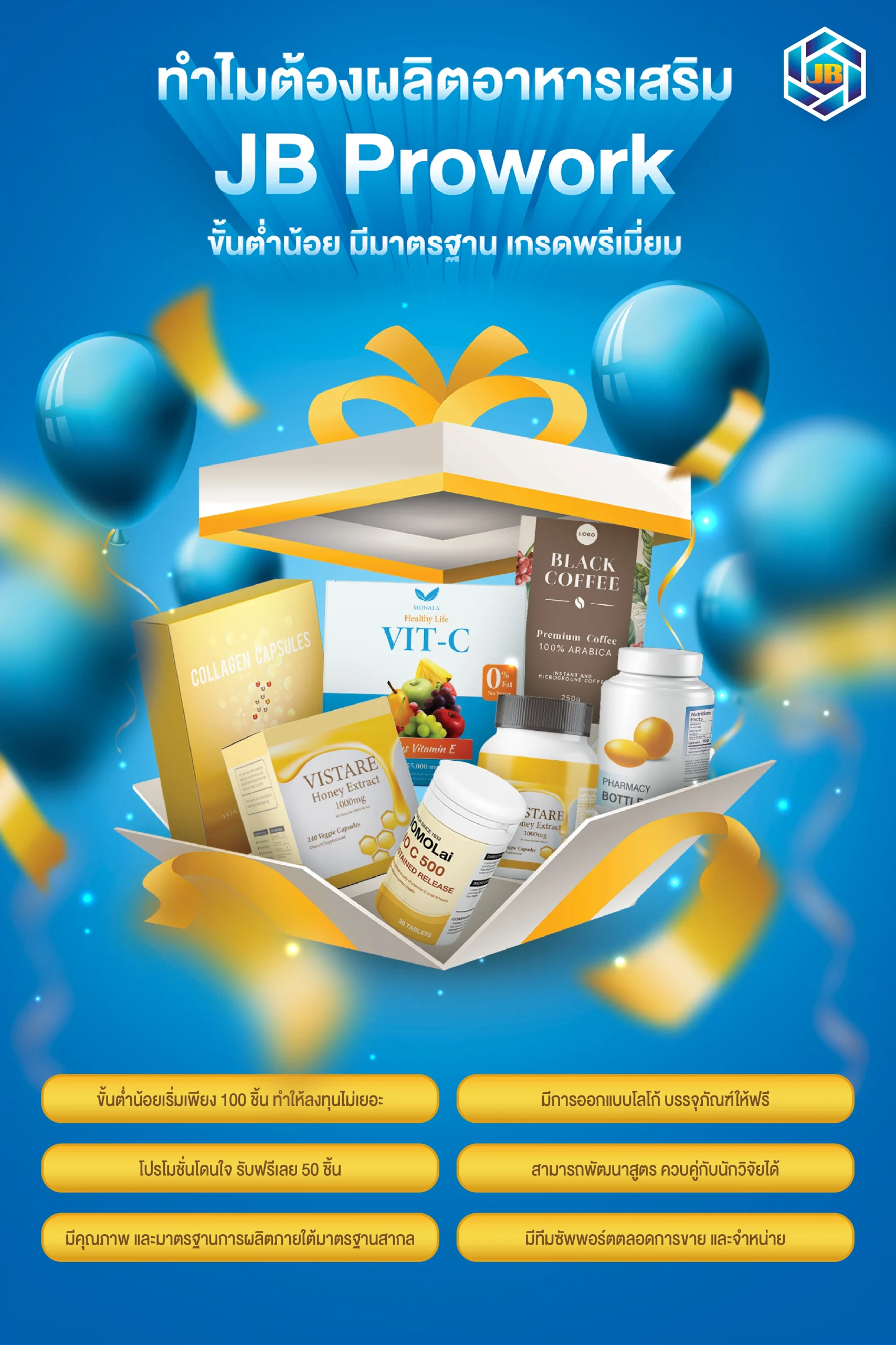 1702x360 px final-011702x360 px final-01 JB Prowork ธุรกิจอาหารเสริม เป็นธุรกิจที่ทั่วโลกกำลังให้ความสนใจ เนื่องจากในปัจจุบันผู้คนหันมาใส่ใจเรื่องสุขภาพกันมากขึ้น หากคุณอยากเป็นเจ้าของธุรกิจอาหารเสริม อยากผลิตสินค้าที่ได้คุณภาพ นึกถึง JB Prowork เรารับบรรจุแผงยา บรรจุแคปซูล ยิงเลขล็อต รับผลิตอาหารเสริม แคปซูลทุกขนาด ผลิตอาหารเสริมทุกชนิด ผลิตสินค้าที่เกี่ยวกับสุขภาพและความงามทุกชนิด มีสูตรเฉพาะให้เลือกหลากหลาย Facebook Phone-alt Line รายละเอียด > คลิก < โรงงานรับบรรจุแผงยา ผลิตอาหารเสริม ขึ้นทะเบียน อย. Facebook Phone-alt Line